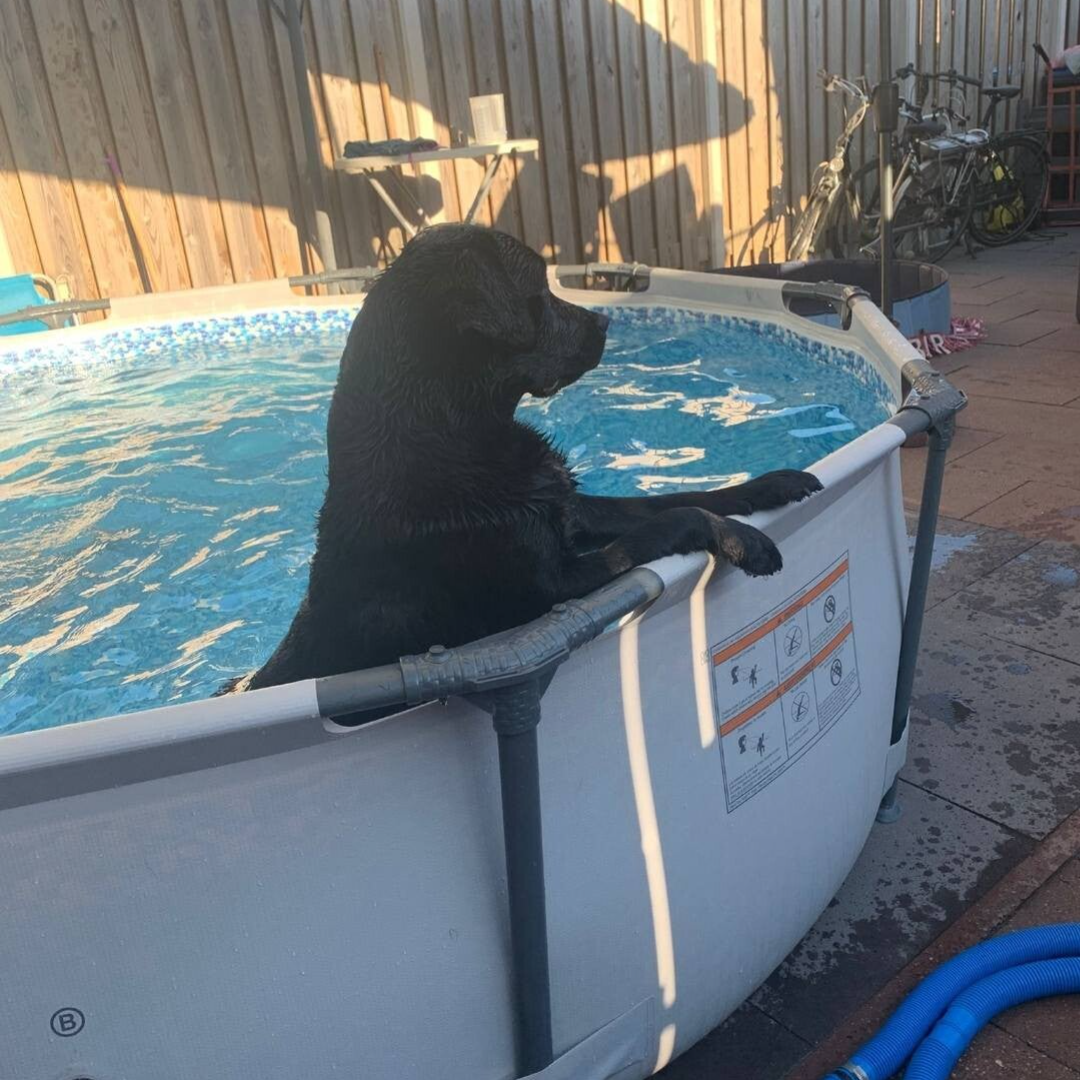 En nu? Nu heet ze Tess en doet ze het fantastisch. Ze woont bij een gezellige familie met vier andere labjes, waar ze helemaal tot bloei komt. Inmiddels is ze al 10 kilo afgevallen en leeft ze haar droom: bijna elke dag met de hele roedel naar het grote speelveld, waar ze los kan rennen, spelen en zwemmen.