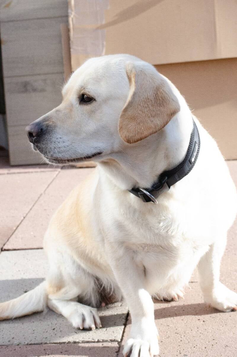 We gingen aan de slag. Kilo’s vlogen er stapje voor stapje af tot je weer op een gezonde 28 kilo zat. Je conditie kwam terug. En toen, de grote ingreep: alle tanden en kiezen eruit. Alles. Geen andere keuze. Maar in ware labrador-stijl liet je zien dat zelfs dát je eetlust niet kon stoppen. Je bleef genieten — van zachte hapjes, knuffels en aandacht.
